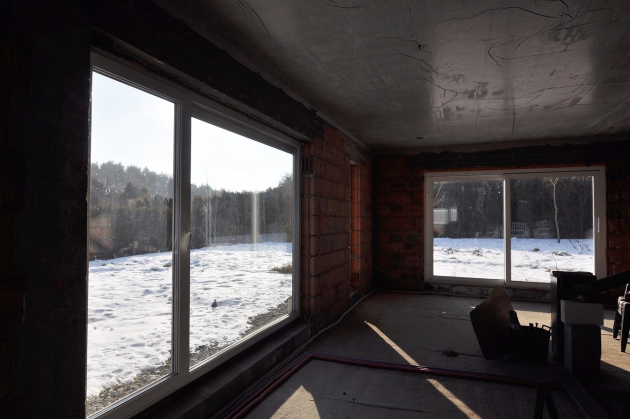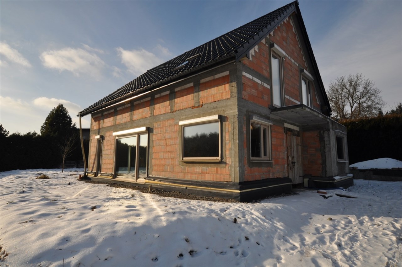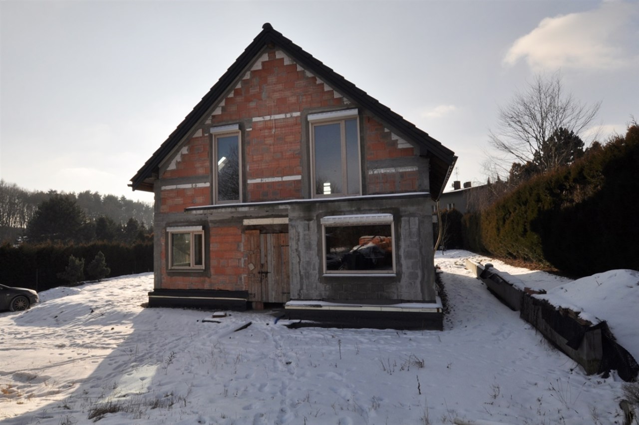 Dom znajduje się w stanie surowym zamkniętym, z wieloma kluczowymi elementami już wykonanymi