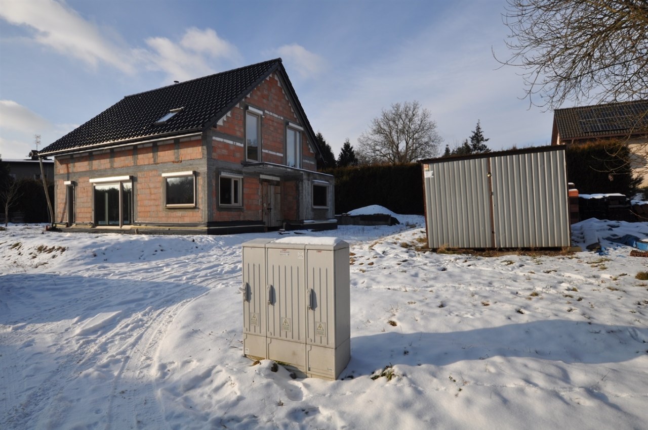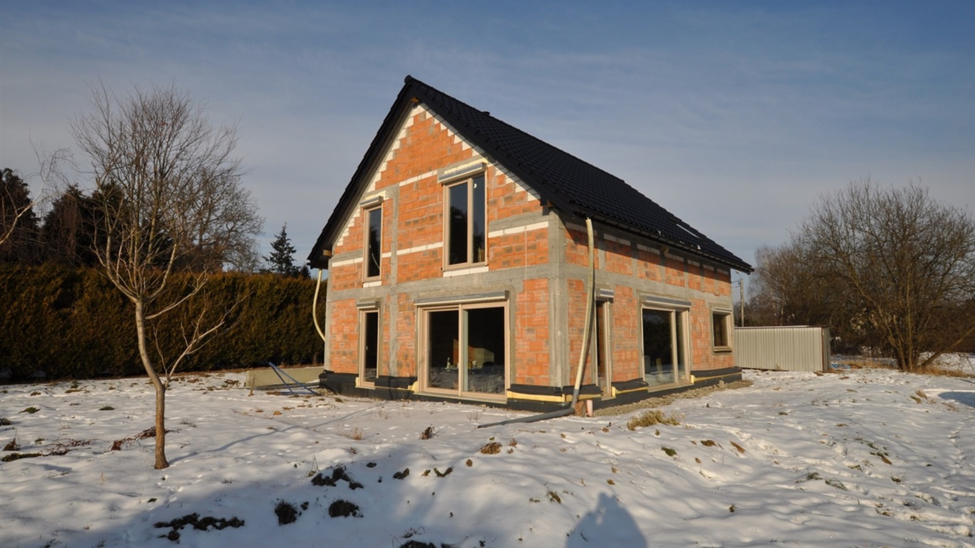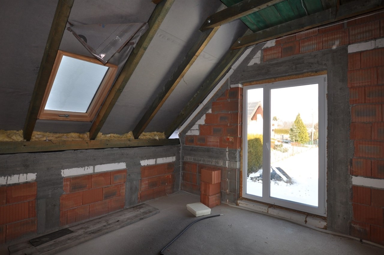 Dom znajduje się w stanie surowym zamkniętym, z wieloma kluczowymi elementami już wykonanymi
