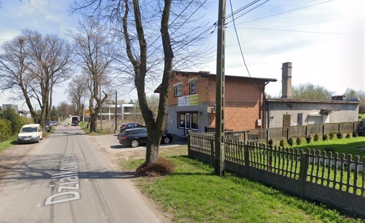 Parcela o powierzchni 930 m2 w kształcie prostokąta. Zabudowana dwoma, połączonymi ze sobą budynkami.
