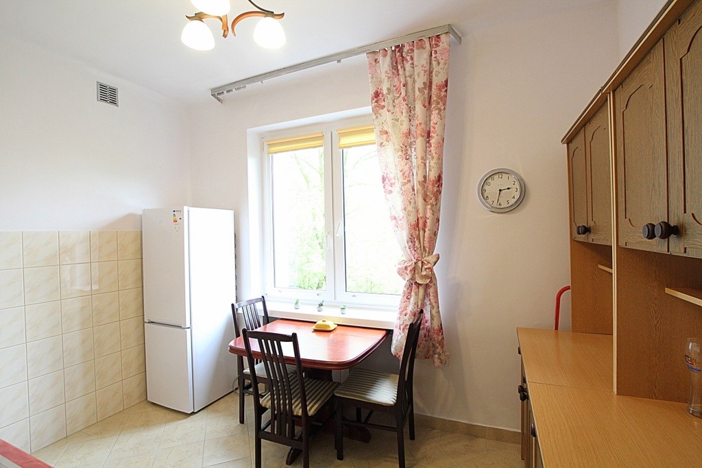 Kuchnia oddzielna z oknem, zabudowana meblami wraz z solidnym dużym stołem. Wyposażona w chłodziarko-zamrażarkę kuchenkę gazową z piekarnikiem.