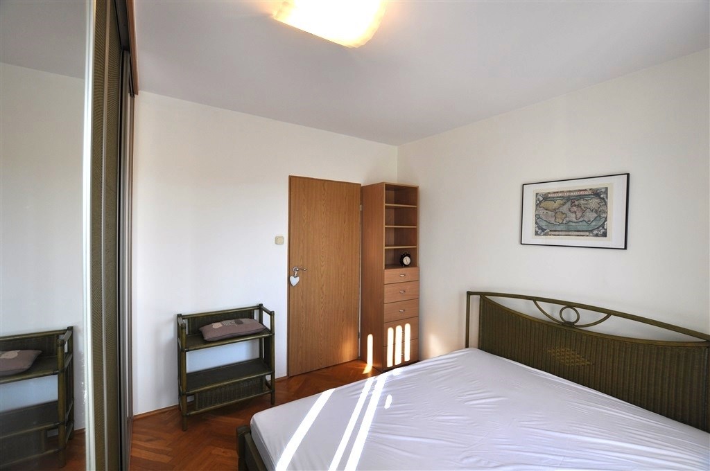 Sypialnia z dużym łóżkiem oraz pojemną szafą