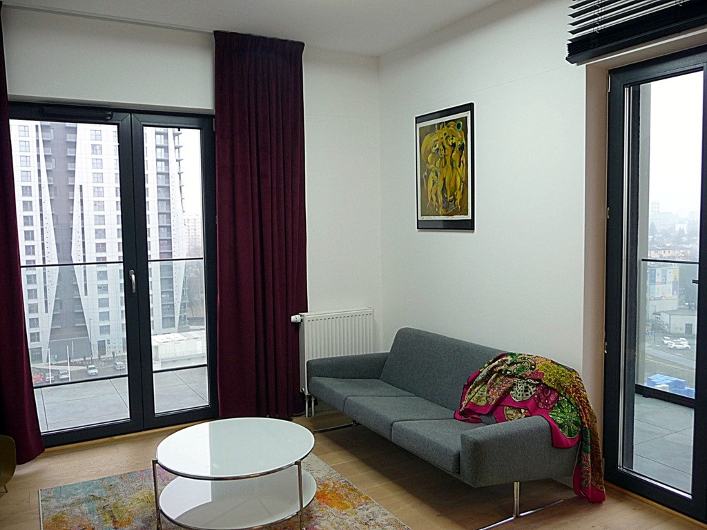 Apartament mieszczący się na IX piętrze z doskonałą panoramą miasta w bezpośrednim sąsiedztwie Strefy Kultury. Został zaprojektowany z naciskiem na komfort i funkcjonalność, a wysokiej klasy materiały wykończeniowe i sprzęt AGD dopełniają idealnej całości. Dwie LOGGIE to dodatkowa przestrzeń użytkowa ok. 20 m2. Jedna z nich o pow. 9m2, może stanowić ogród zimowy. Druga o pow. 14 m2 częściowo zaszklona, częściowo odkryta. Dostęp do loggii z każdego pokoju i kuchni. Przestrzeni dodaje wysokość pomieszczeń - 2,70 cm. Duże przeszklenia, a także wystawa okien na dwie strony świata (południowy-zachód i północ - kuchnia) wypełniają apartament naturalnym światłem od świtu po zmrok. Okna wyposażone w nowoczesne metalowe żaluzje. Podłogi drewniane – deska dębowa. Drzwi wejściowe antywłamaniowe marki Dierre, drzwi wewnętrzne firmy Barański. Do apartamentu przypisana jest komórka lokatorska (w cenie najmu).